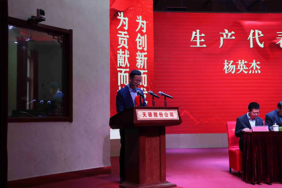 大會第一項,副總經(jīng)理王華東宣讀表彰決定。此次表彰力度空前,對40名勞動模范、32名先進(jìn)工作者、4名技改創(chuàng)新能手、4名科技創(chuàng)新能手、39名銷售精英、2名管理貢獻(xiàn)者,總計121位優(yōu)秀員工,以及4個先進(jìn)科室給予嘉獎,總獎勵金額高達(dá)157萬元。生產(chǎn)領(lǐng)域的楊英杰、銷售團(tuán)隊的張衛(wèi)華與朱云陽、財務(wù)部門的張凱、研發(fā)板塊的杜艷麗作為獲獎代表,滿懷榮耀登上講臺,分享他們的奮斗歷程與感悟。