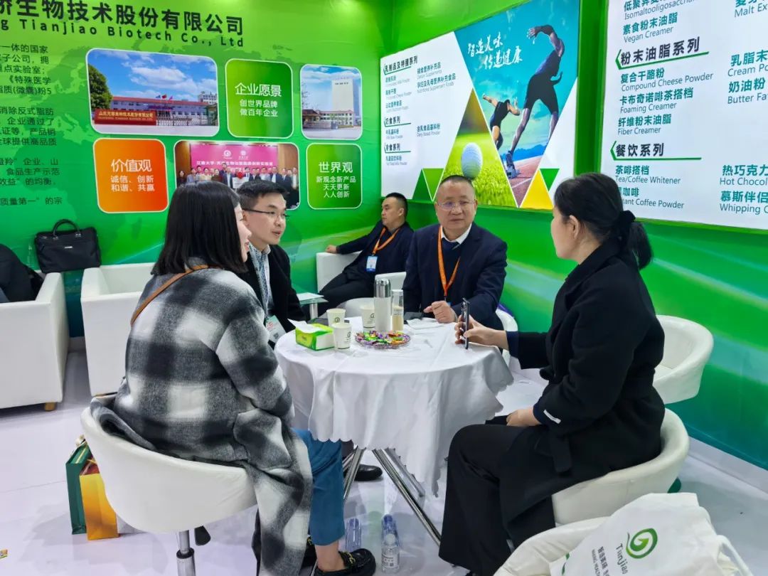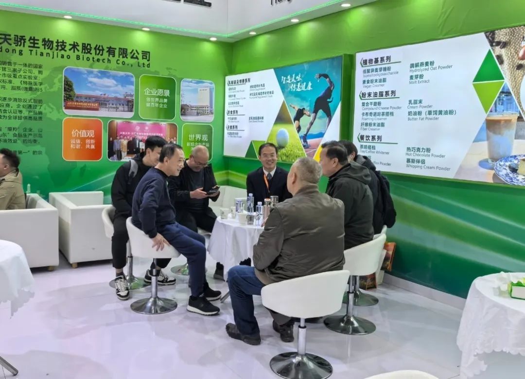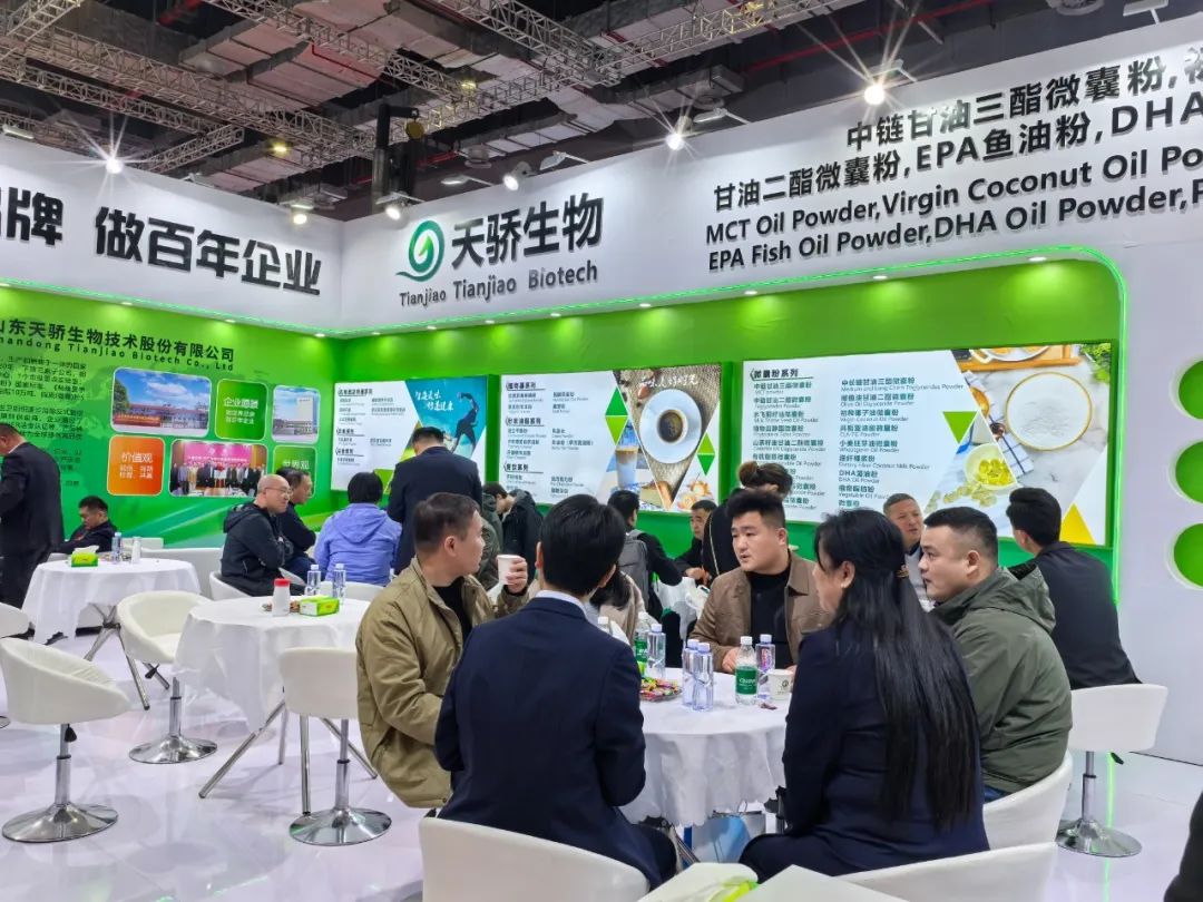 展會期間,天驕生物展位(展號:41Q00)人流不斷,作為全球功能性食品原料的創(chuàng)新者,天驕生物此次展出了:MCT粉、初榨椰子油微囊粉、甘油二酯微囊粉、植物甾醇酯微囊粉、植物脂肪粉、高蛋白粉、魚油粉、DHA藻油粉、中長鏈甘油三酯微囊粉等核心系列產(chǎn)品,憑借其卓越的產(chǎn)品力與創(chuàng)新技術(shù),在本次展會中大放異彩,吸引了無數(shù)行業(yè)專家、合作伙伴及客戶的關(guān)注與認可,也受到了食品配料行業(yè)的高度關(guān)注,為未來的市場拓展奠定了堅實基礎。