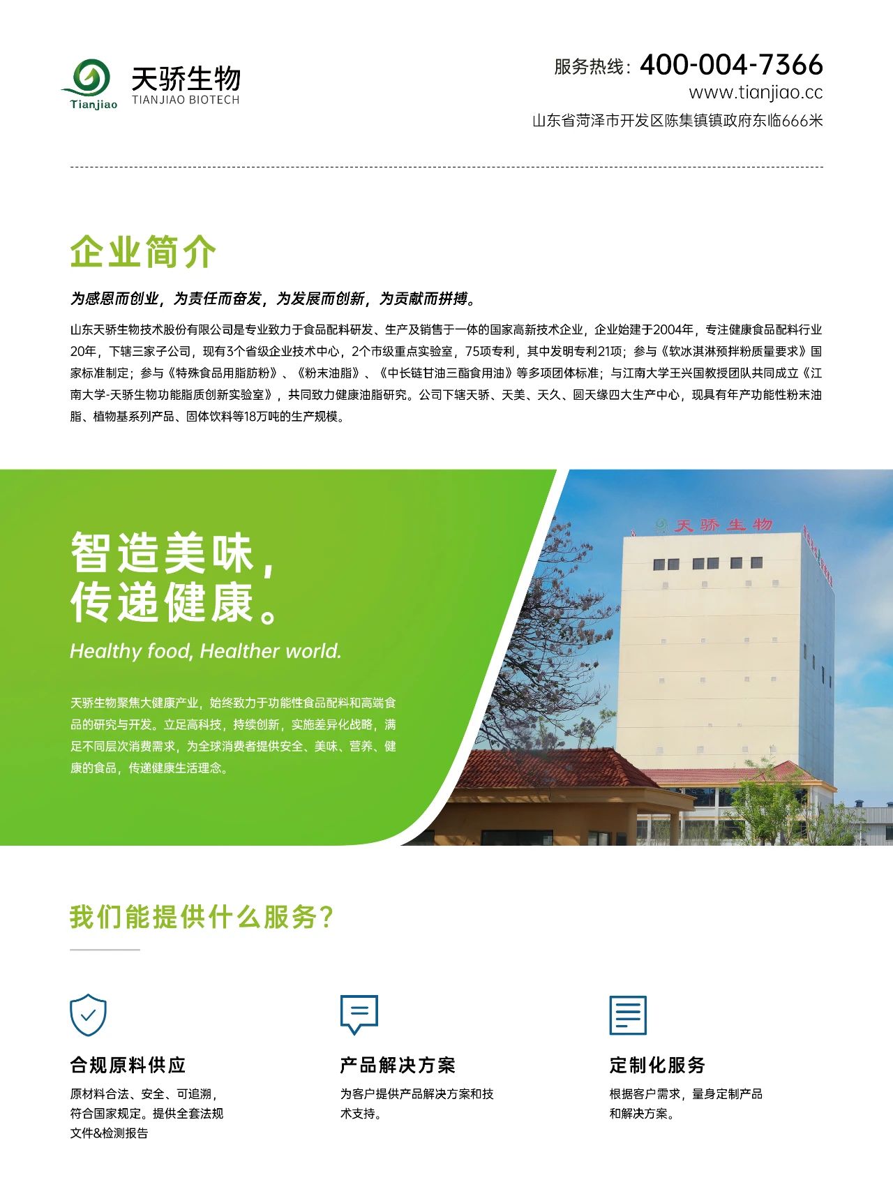 特醫(yī)食品產(chǎn)業(yè)正在駛?cè)搿芭R床營養(yǎng)+精準(zhǔn)配方+功能成分”深融合階段,作為專業(yè)的食品配料制造企業(yè),天驕生物將持續(xù)以研發(fā)為核心,以安全合規(guī)為底線,為客戶提供專業(yè)的特醫(yī)食品原料解決方案與OEM/ODM配套服務(wù)。
