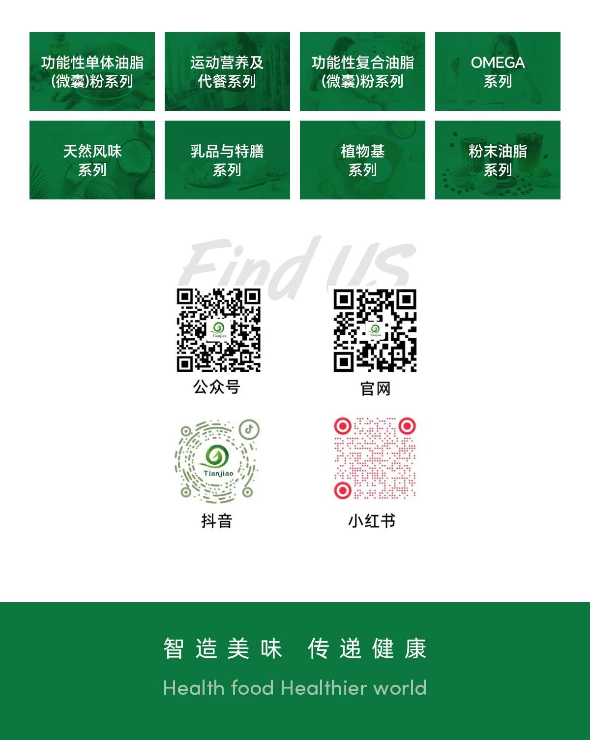 在消費(fèi)需求日益多元化的背景下,食品配料行業(yè)正加速邁向高品質(zhì)、多場(chǎng)景的升級(jí)路徑。天驕公司緊跟行業(yè)趨勢(shì),深耕技術(shù)創(chuàng)新,傾力打造覆蓋粉末油脂、脂質(zhì)(微囊)粉、植物基、乳品與特膳、固體飲料、淀粉糖制品六大產(chǎn)品系列的一站式配料解決方案。這些產(chǎn)品方案廣泛適配于多種食品形態(tài),不僅賦予產(chǎn)品更豐富的風(fēng)味層次與營養(yǎng)價(jià)值,更為品牌創(chuàng)造更具市場(chǎng)競(jìng)爭(zhēng)力的附加值,全方位滿足健康、便捷、美味等多元消費(fèi)需求,引領(lǐng)食品產(chǎn)業(yè)實(shí)現(xiàn)品質(zhì)躍遷。