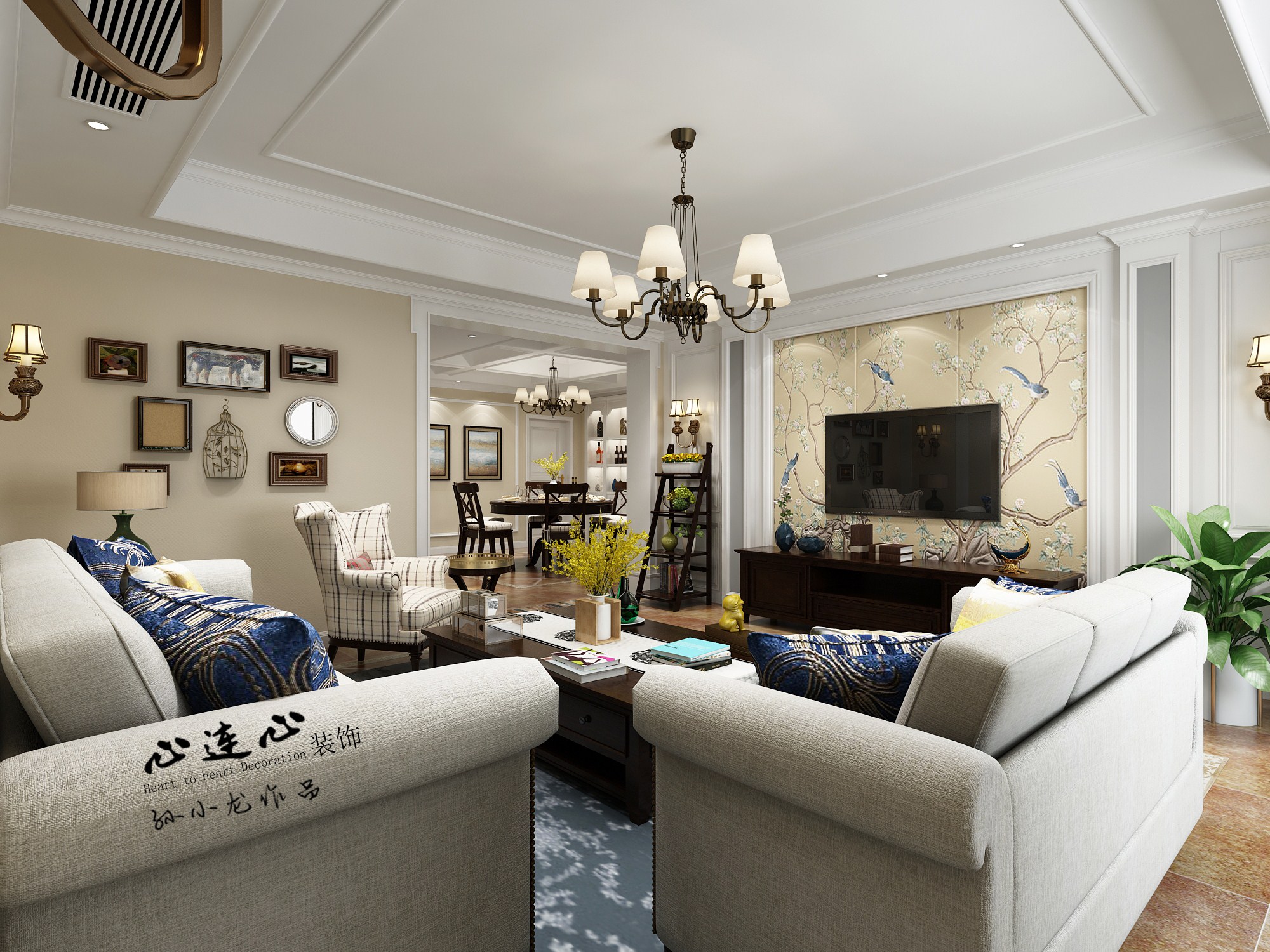 簡(jiǎn)美風(fēng)格中,客廳以暖色為主色調(diào)。 采用充滿美式元素造型設(shè)計(jì)具有質(zhì)樸的紋理, 這樣創(chuàng)造了自然、簡(jiǎn)譜的視覺(jué)效果。 整體設(shè)計(jì)上給人帶來(lái)清爽明快之感,空間布局讓人感覺(jué)舒暢, 即使比較單一的色調(diào)讓人也不會(huì)看膩。 空間布局、色彩運(yùn)用、材質(zhì)的選擇,都突出了簡(jiǎn)約又大氣的風(fēng)格。