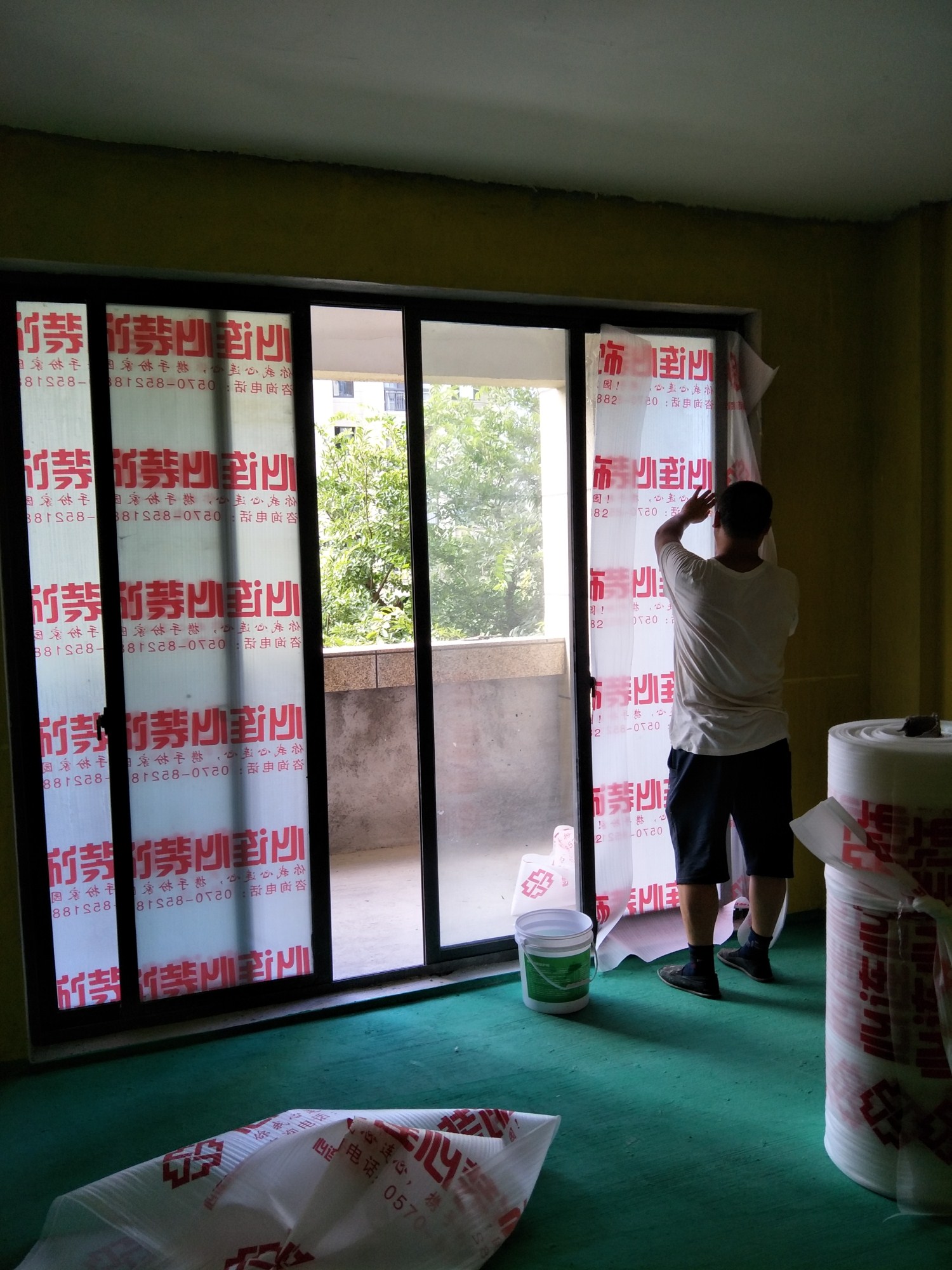 在開(kāi)工前一天現(xiàn)場(chǎng)的黃墻綠地就已全部刷好