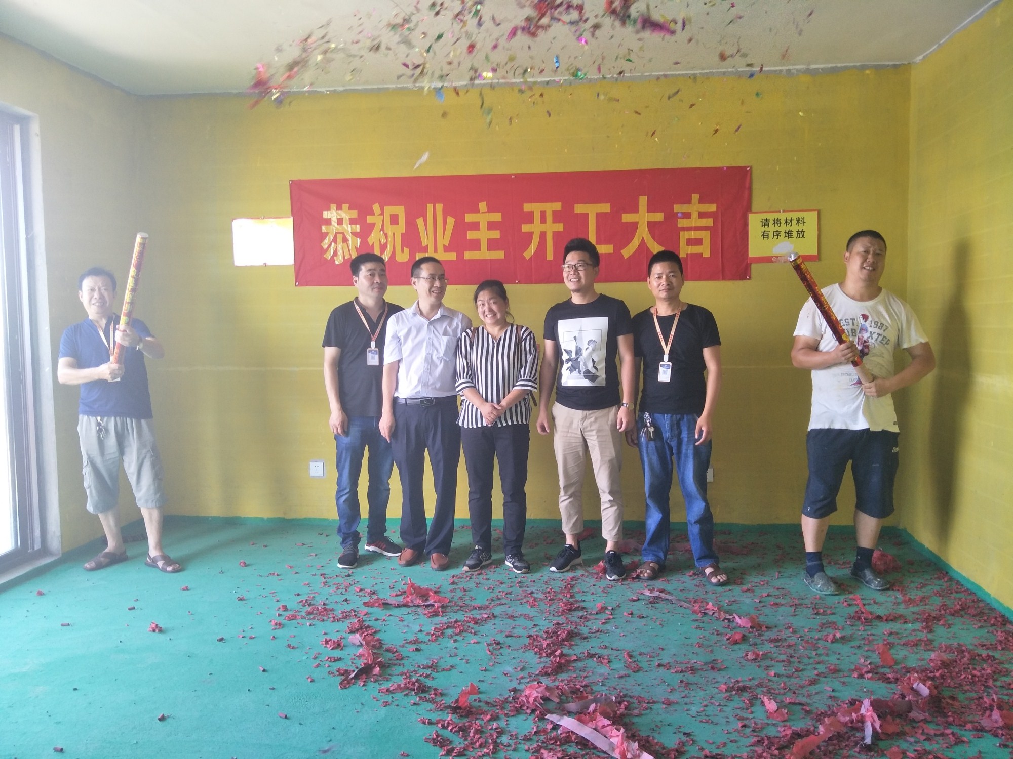 工程部-邱質(zhì)檢 提前擺放好開(kāi)工鞭炮